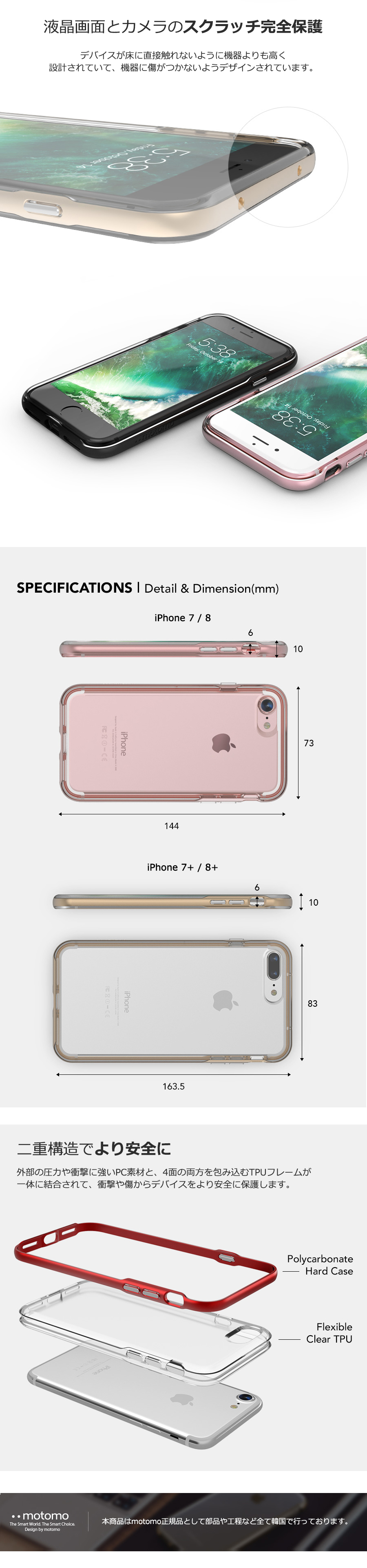 【iPhone 7 / 8】 73×144×10mm 【iPhone 7+ / 8+】 83×163.5×10mm |