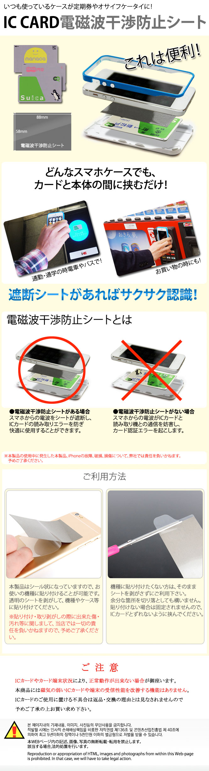 | 商品説明 | スマホからの電波をシートが遮断し、ICカードの読み取りエラーを防ぎ快適に使用することができます。 |